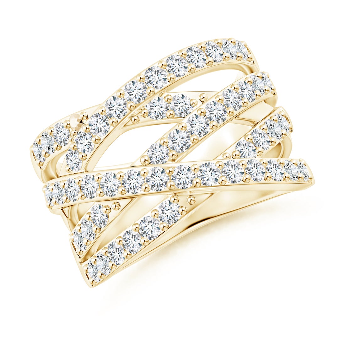 Sparkling bands of prong-set lab-grown diamonds are arranged in an entwined pattern for an exquisite look. This gorgeous and elegant wrap ring is designed in 14k yellow gold.