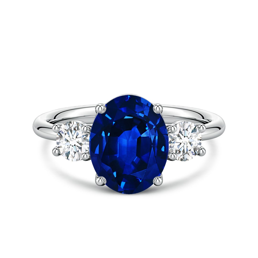 Lab-Grown Oval Blue Sapphire and Round Diamond Three-Stone Engagement Ring
