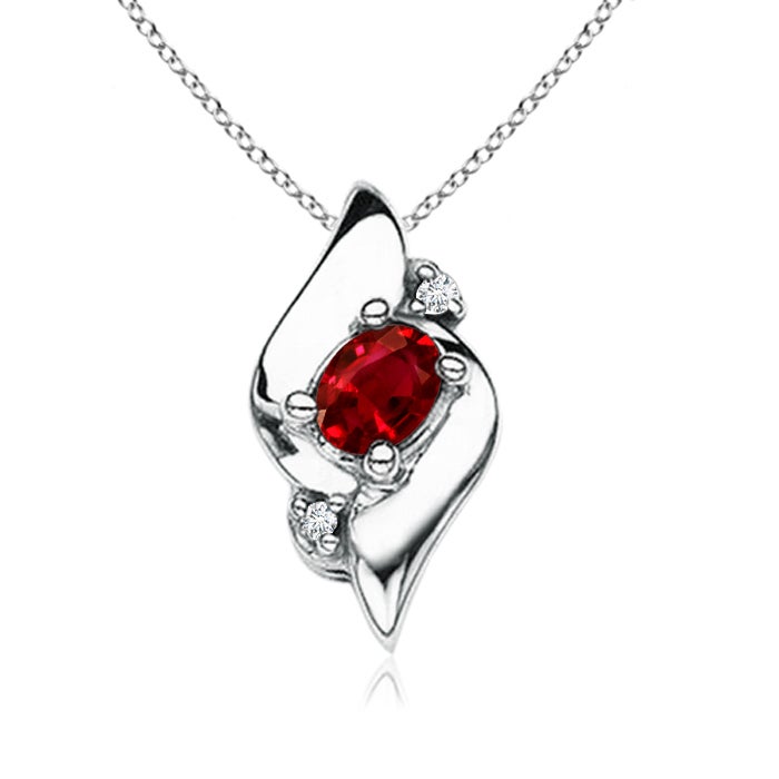 Shell Style Oval Ruby and Diamond Pendant