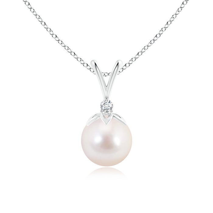 Home/Jewellery/Pendants/Akoya Cultured Pearl Pendants/Japanese Akoya Pearl V-Bale Pendant with Diamond